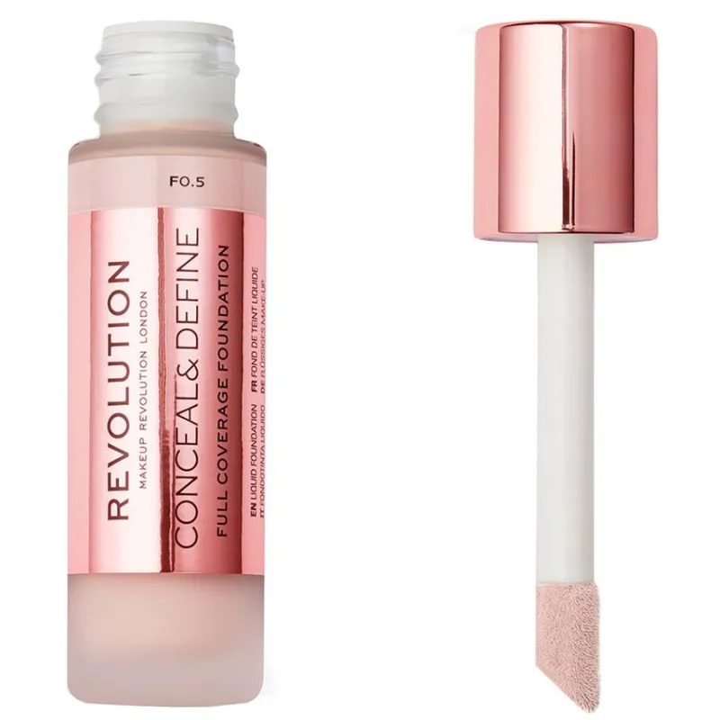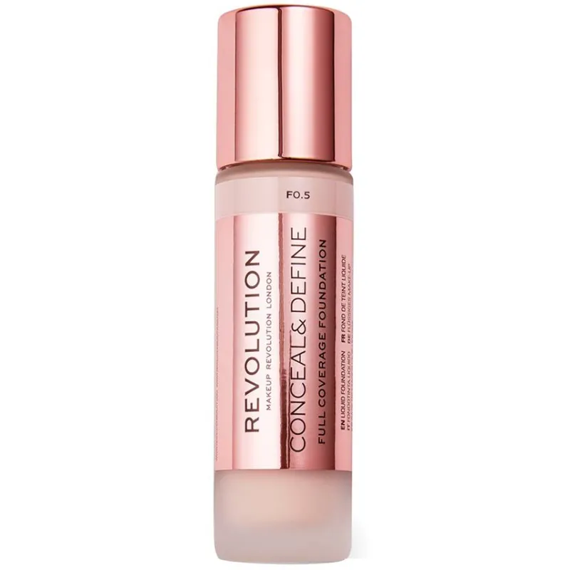 Makeup Revolution Skjul & Define Foundation er tilgjengelig i mange forskjellige farger fra mørk til lys med nyanser av kjølige, nøytrale eller varme undertoner.