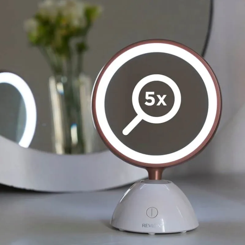 Revlon® Ultimate Glow Beauty Mirror er det perfekte tilbehøret med sin kompakte, trådløse design og integrerte LED-l…