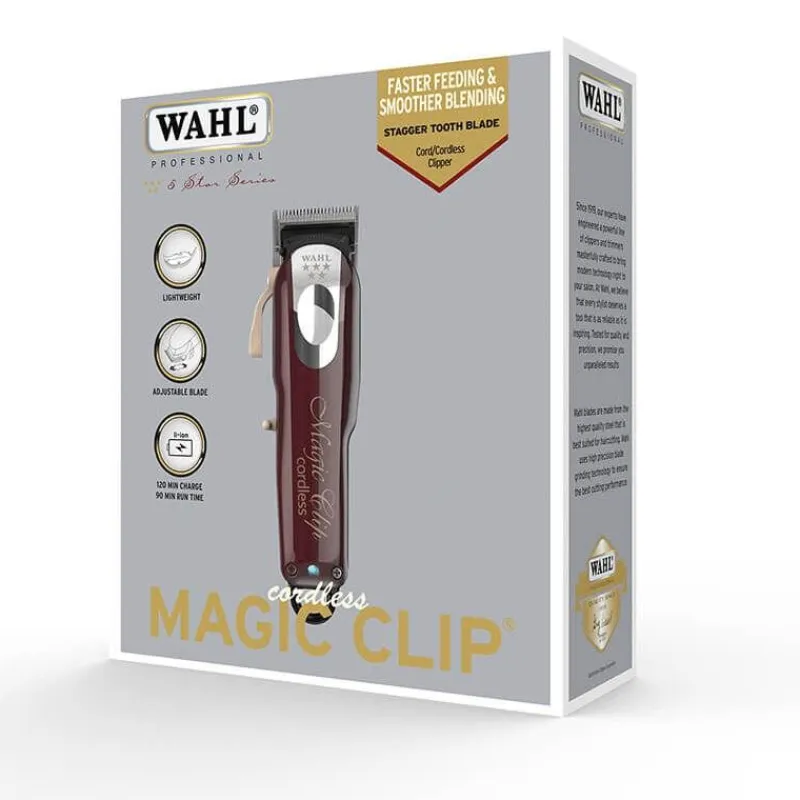 >> Den 5-stjerners Cordless Magic Clip er designet for å levere den skarpe ytelsen som eksperter krever med friheten til en trådløs klipper. Magien er i bladene! Cordless Magic Clip har et høypresisjons stagger-tooth 2161-blad med crunch-teknologi. Dette trådløse verktøyet tilbyr hastighet og brukervennlighet i verdensklasse, en praktisk avsmalnende spak for enkel uttoning, og et litium-ion-batteri for 100 minutters driftstid per lading. Den har ogsåå en lednings/lednings klippekapasitet.