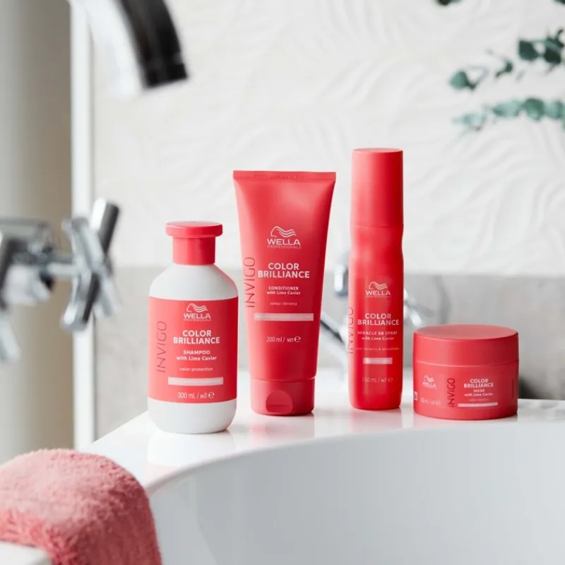 Wella Professionals Invigo Color Brilliance Mask Fine Hair er en profesjonell hårmaske for farget hår. Denne dypt fuktighetsgivende og pleiende hårmasken gjør håret ditt glatt, skinnende og uimotståelig mykt. Denne fargebevarende masken inneholder Color Brilliance-Blend™ og limekaviar, en ingrediens kjent for å være rik på ulike antioksidanter og vitaminer, og hjelper aktivt til med å kontrollere oksidasjonsprosessen som skjer etter farging.