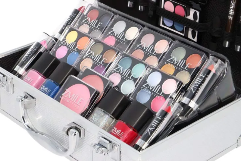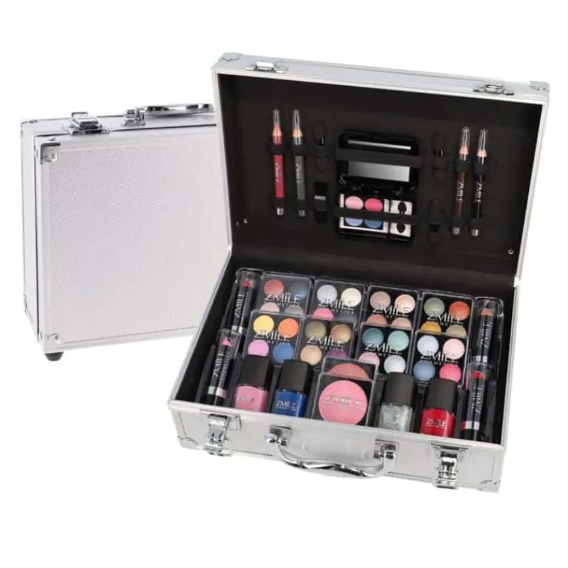 Et sminkesett som inneholder det meste du trenger for en vellykket og variert sminke som er pent pakket inn i en aluminiumskoffert.